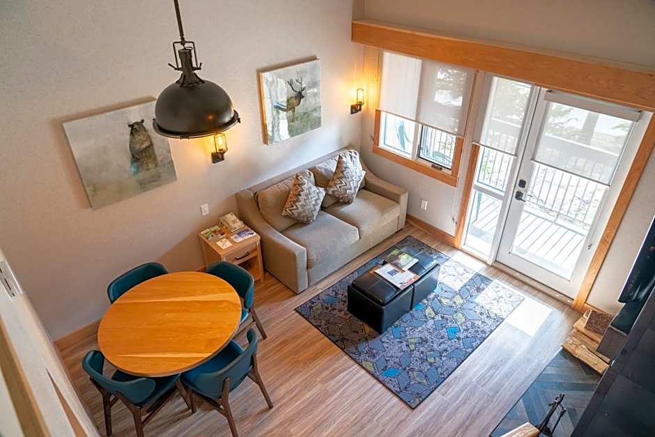 This chalet features a master bedroom, an upstairs loft, fireplace, private entrance and balcony or patio.